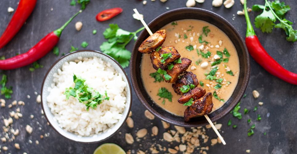 - Chicken satay, rýže